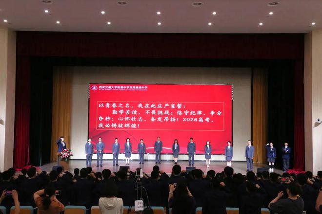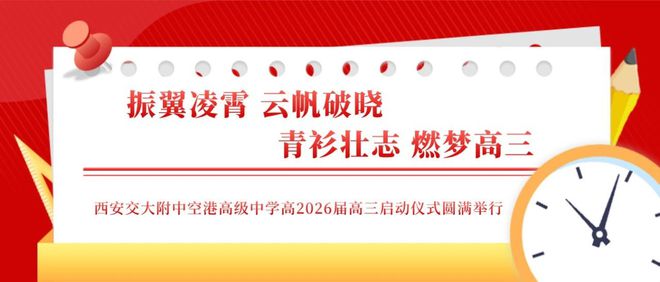 西安交大附中空港高级中学高2026届全体师生必将以“破晓者”的勇毅与智慧,在未来的征途上披荆斩棘,在奋斗的岁月里镌刻荣光,共同书写无愧于青春的绝美篇章!今日长缨在手,他日缚住苍龙!2026,同学们顶峰相见!