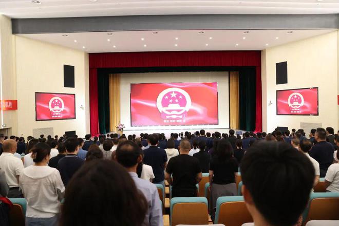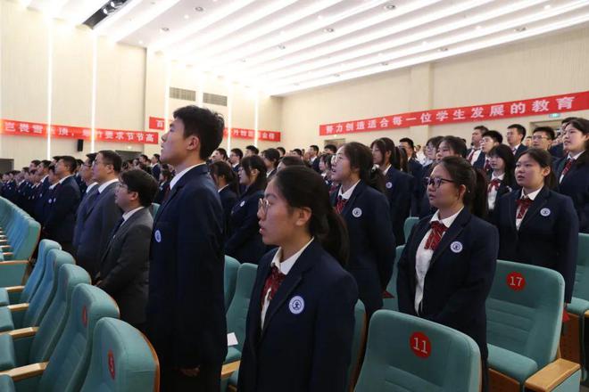 仪式在雄壮的国歌声中拉开帷幕。全体师生肃立,齐声高唱国歌。