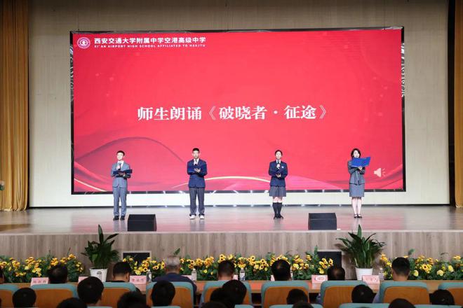 师生共同朗诵的《破晓者·征途》震撼全场。字字句句叩击心灵,展现了师生同心、携手并进的坚定信念。