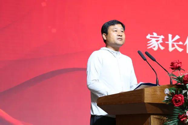 杨新利先生作为学生家长代表上台讲话。他首先感谢了学校对孩子们的精心培育和老师们的辛勤付出。他说到,家长们深知高三对孩子们既是成长也是挑战,并强调孩子们并非孤军奋战,老师是引路人,父母是坚实的后盾。最后,他寄语孩子们珍惜时光,全力以赴,并代表全体家长表达了静待花开的美好心愿。