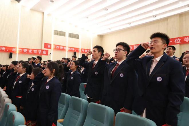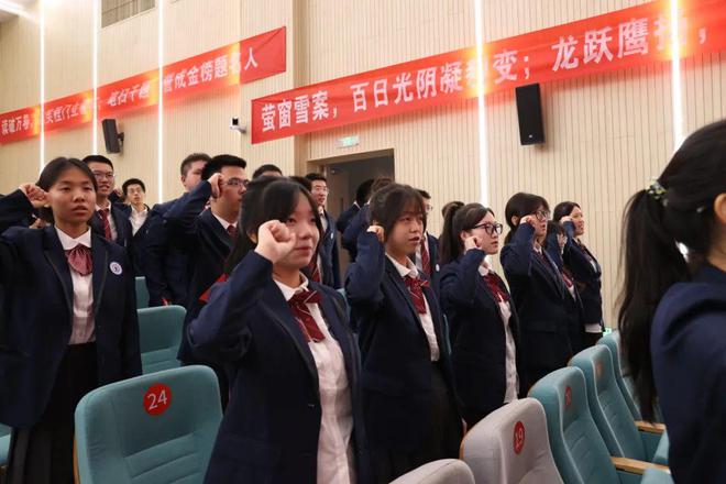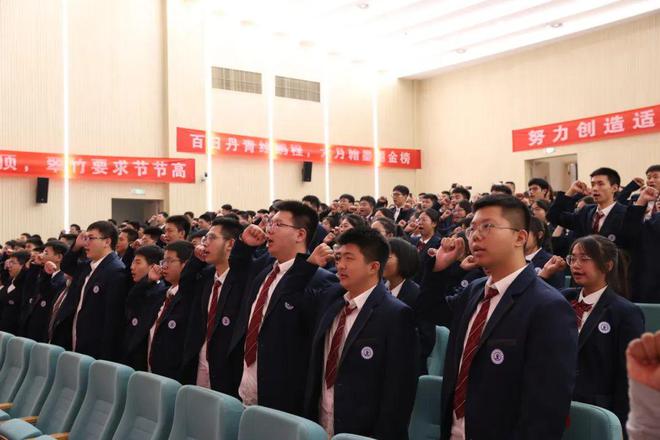 仪式在全体高2026届学子气壮山河的集体宣誓中达到顶峰,由刘力博同学领誓,同学们起立紧握右拳,目光如炬,以青春的名义向未来庄严宣誓。