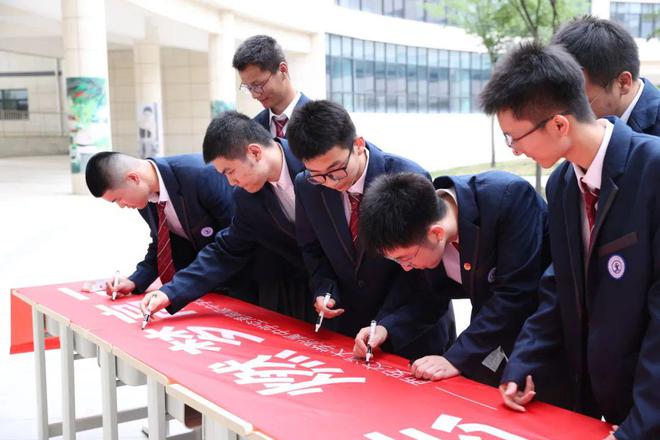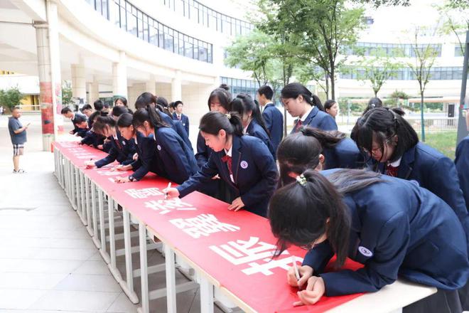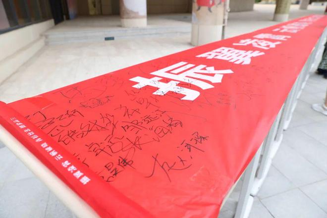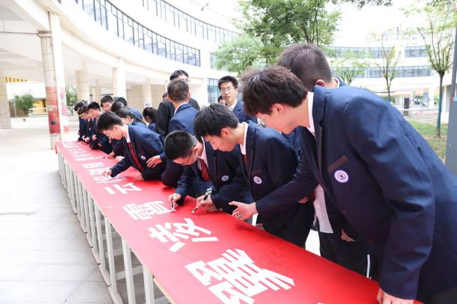 横幅展开如一卷青春的画卷,同学们以名为印,以志为墨,郑重签下自己的名字,代表着自己的承诺与决心。这方寸之间的留白,终将被少年未来拼搏的身姿填满。