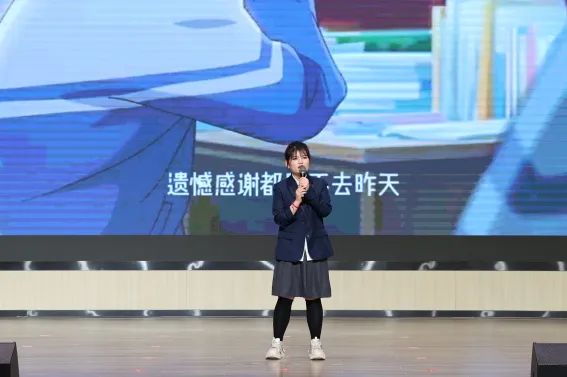 蔡坤纳老师代表毕业年级教师发言,她深情回顾了学生们在西安交大附中空港校区度过的三年时光,表达了对离别的不舍和对孩子们的祝福。她向学生、并肩奋斗的教师团队表示感谢。面对未来,蔡老师对孩子们提出三点期待:一是做一个守正的人,秉持正直、坚韧与善良;二是做一个有温度的人,践行校训“弘德、广识、励志、笃行”,承担时代责任;三是做一个有根的人,将母校的精神融入行动,成为交附空港的骄傲。最后,她叮嘱毕业生们,母校永远是他们的港湾,祝愿他们一路顺风,常回母校看看。