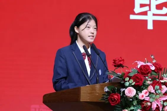 周敬华女士作为家长代表致辞,她首先代表全体毕业生家长,向学校和老师们致以诚挚感谢与崇高敬意,并向圆满完成学业的同学们表示热烈祝贺。她回顾了孩子们三年来从青涩懵懂到自信昂扬的显著成长,肯定了学校在传授知识之外,更教会了孩子们独立思考、直面困难、团队协作和在挫折中成长的能力。她特别强调了老师们的敬业付出、严谨教学以及在生活与学习上对孩子的悉心关怀。面对即将踏上新征程的毕业生,她勉励大家将宝贵经历化作力量,以坚韧精神迎接未来挑战。