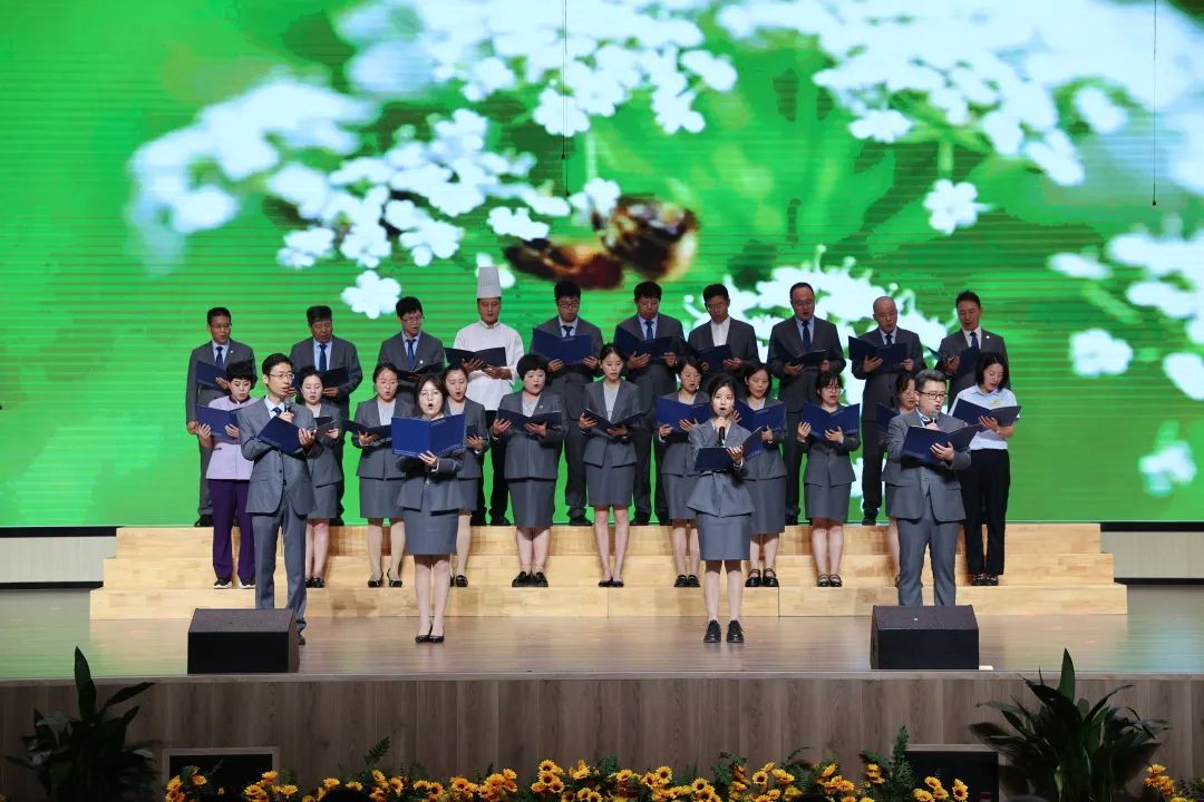 全场毕业生肃立,齐声唱响校歌,深情告别,歌声久久回荡。