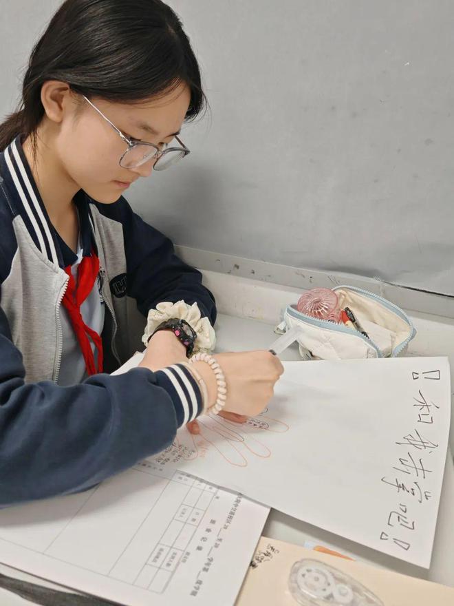 6月的班会课,班主任带着“Give me five!”点燃班级热情~从老师画下手掌轮廓,到同学们依次传递、描掌印、签缩写,再写下鼓励自己或同学的话,每一步都藏着力量。一句“你超棒,别放弃!”让击掌不只是动作,更是班级里相互支撑的温暖约定,让我们明白,前行路上,总有人与你“击掌”同行~