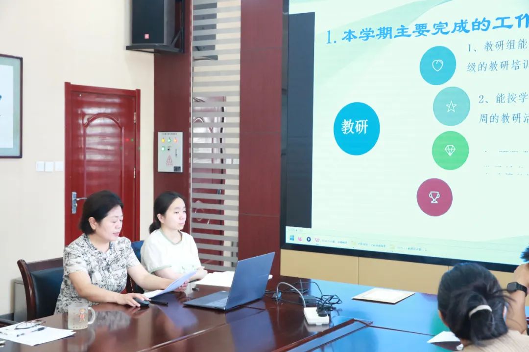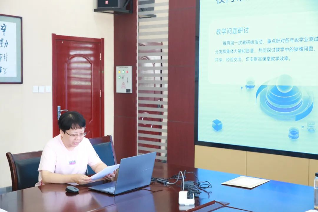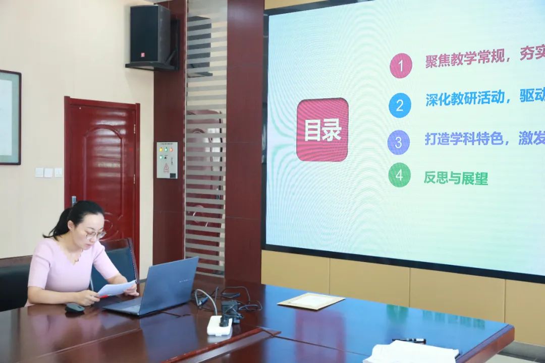 随后,各位教研员按学科顺序依次登台,以翔实的数据、生动的案例,围绕教学研究、课程创新、教师培养等重点工作展开述职。语文组教研员分享了“大单元教学”实践的阶段性成果,数学组展示了校本作业体系开发的创新路径,英语组则汇报了跨学科主题学习的探索经验……汇报中既有对“双减”政策落地的深度思考,也有对新课标实施的创新实践,充分展现了西安市航天中学教研团队扎实的专业素养与开拓精神。