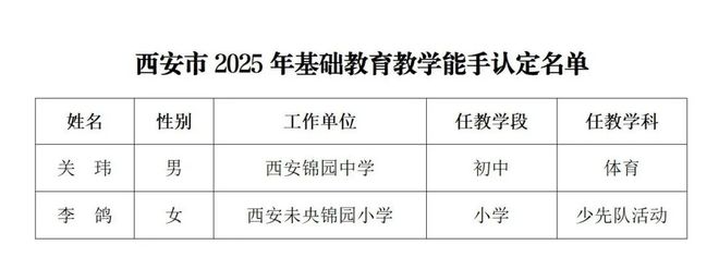 近日,2025 年西安市基础教育教学能手评选结果揭晓,锦园学校的关玮、李鸽两位老师凭借出色的表现脱颖而出,荣获 “西安市基础教育教学能手” 称号。这一荣誉不仅是对两位老师个人专业能力的高度认可,也是锦园学校在基础教育领域深耕细作的有力见证。