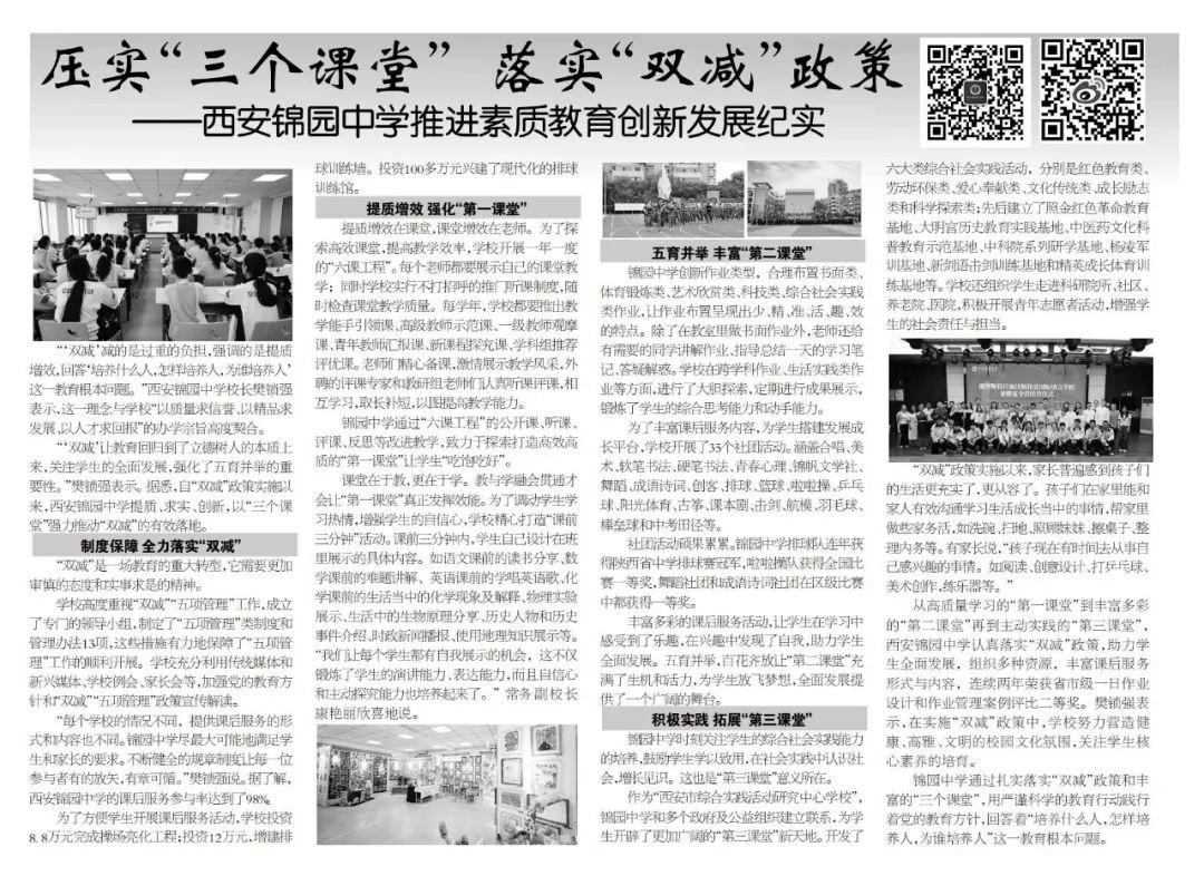 压实“三个课堂” 落实“双减”政策——西安锦园中学推进素质教育创新发展纪实