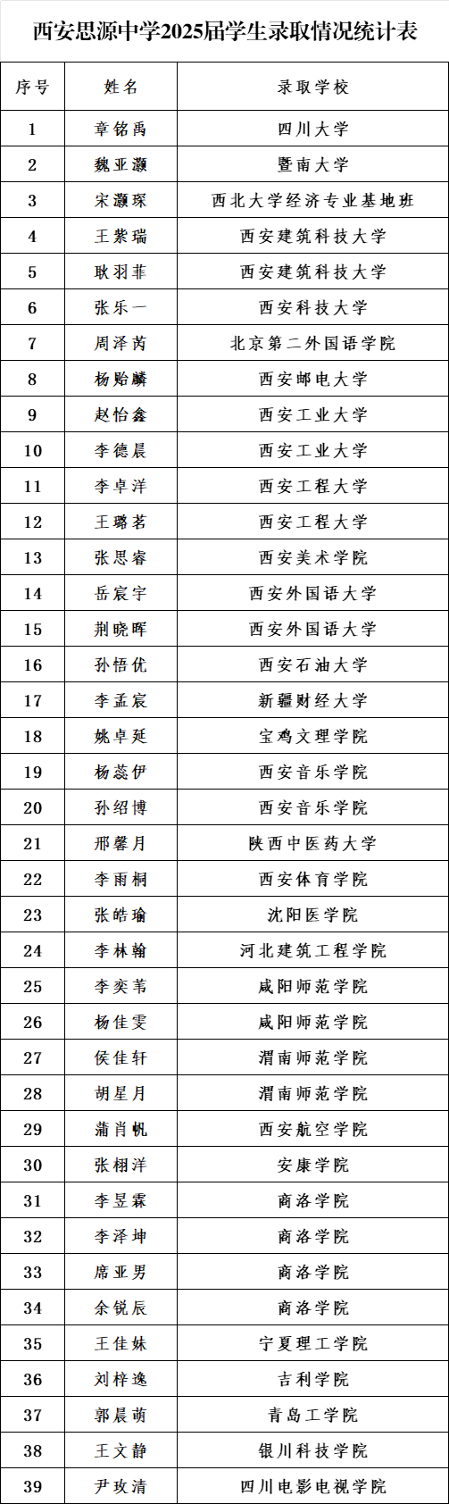 砥砺耕耘结硕果 桃李芬芳捷报传 | 2025年西安思源中学高考录取结果(一)