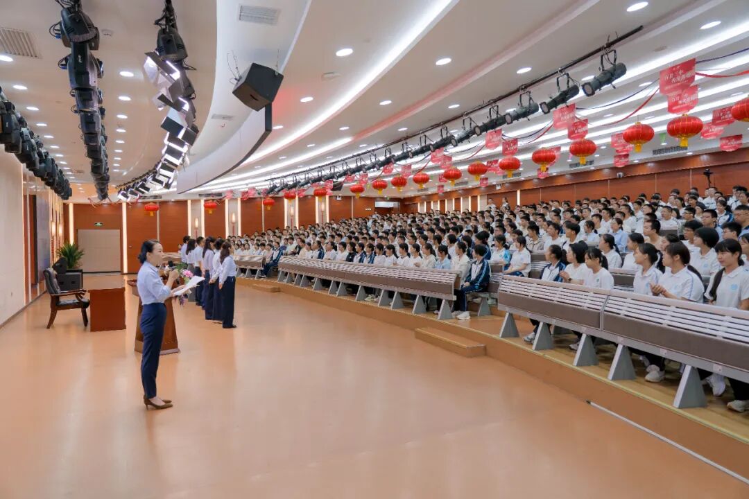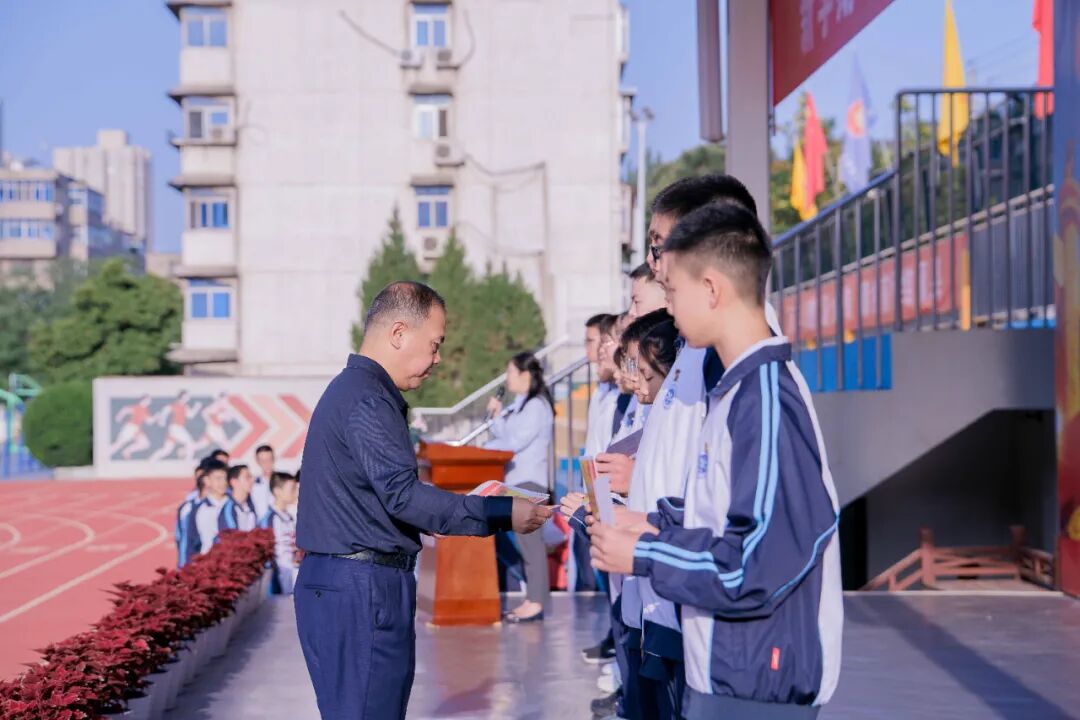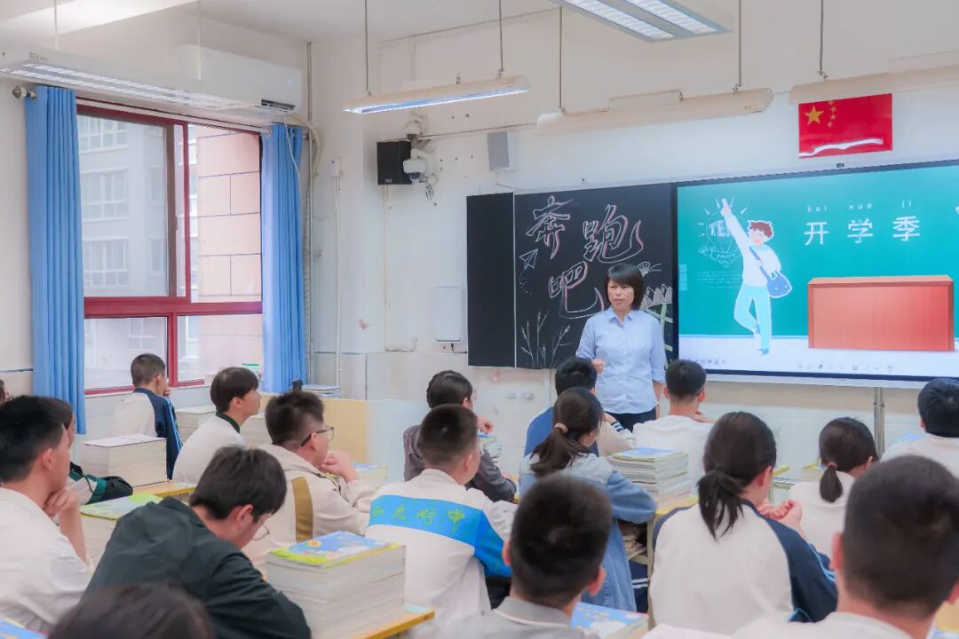 李艳玲副校长在开学典礼致辞中,热烈欢迎新同学、新老师加入三中大家庭,对全体同学提出新学期寄语:从“新”出发,不负韶华;强健体魄,赋能未来;铭记历史,吾辈自强。