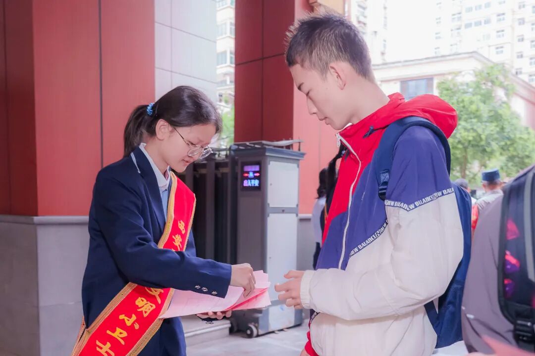 学哥学姐作为志愿者,为每一位入校新同学发放报到须知,热心帮助住校生运送行李,引导新生快速熟悉流程,找到自己的新班级。