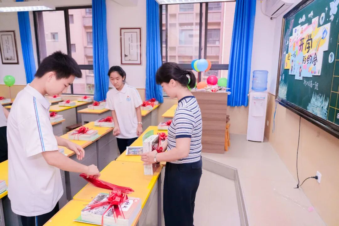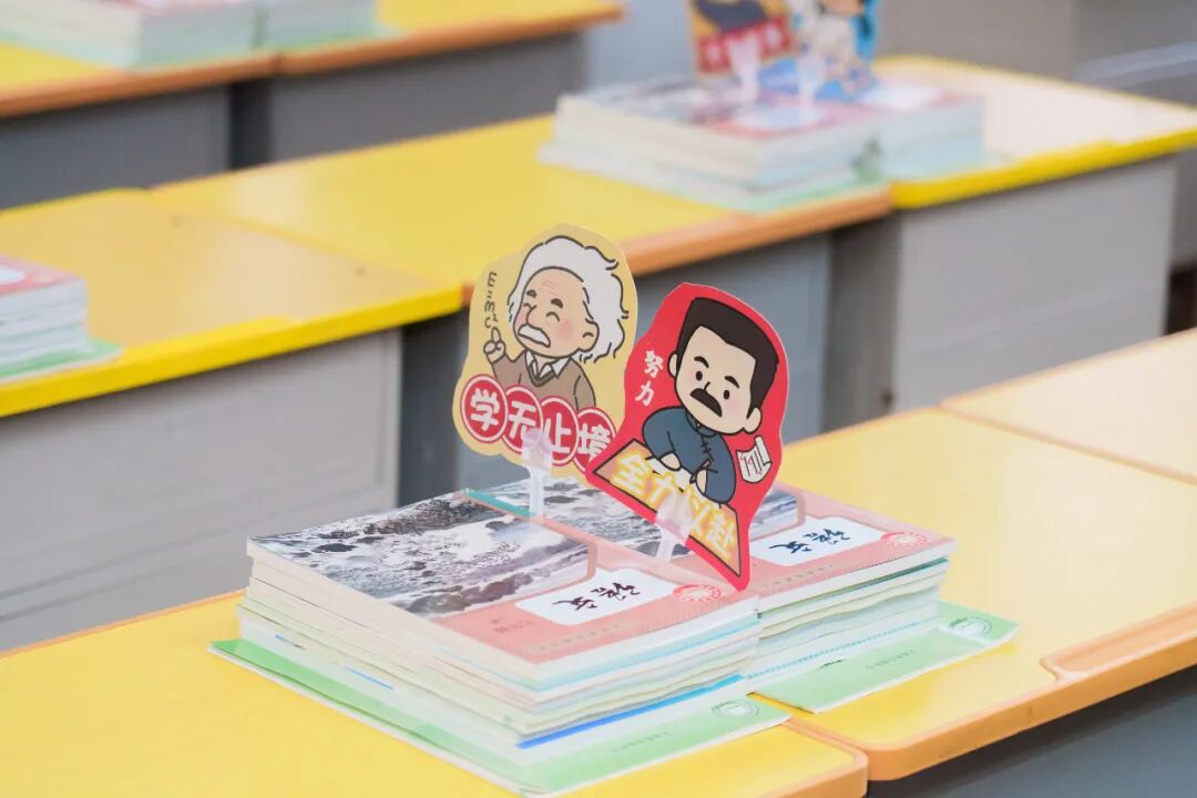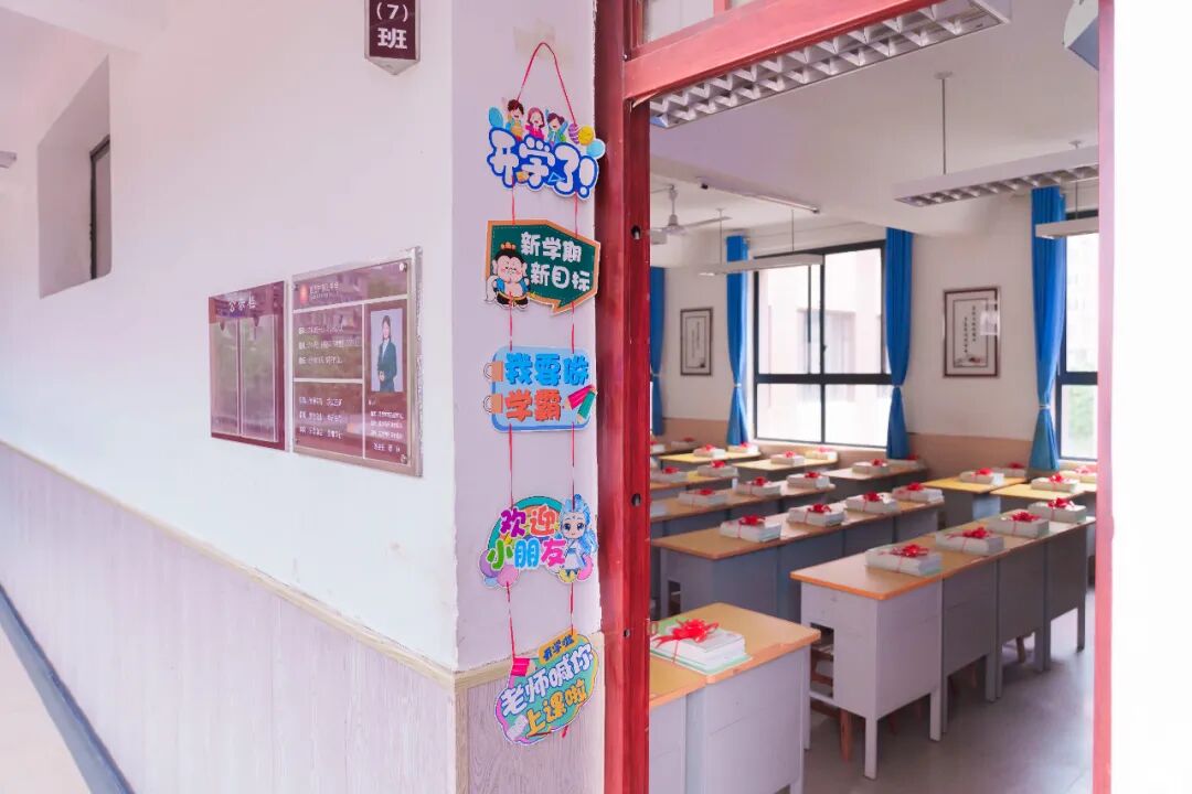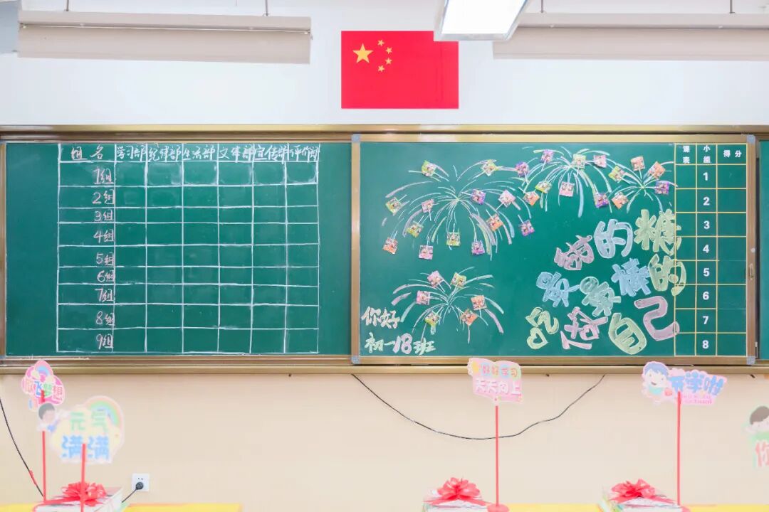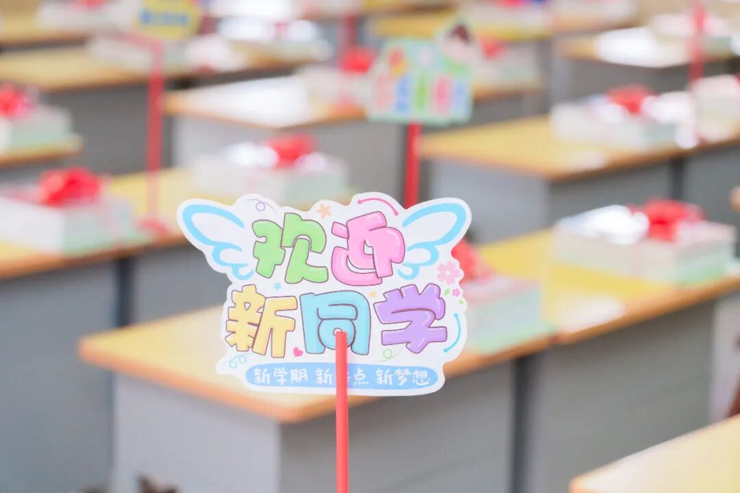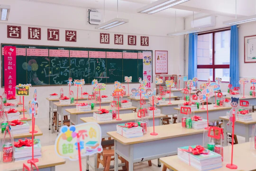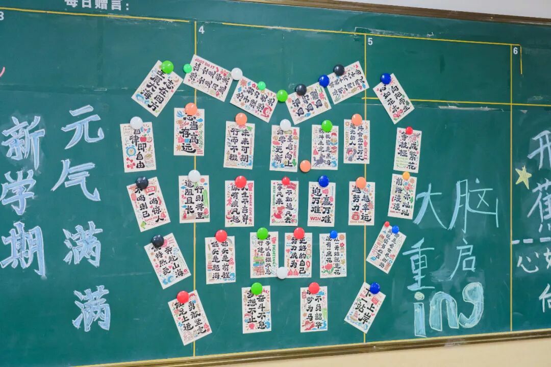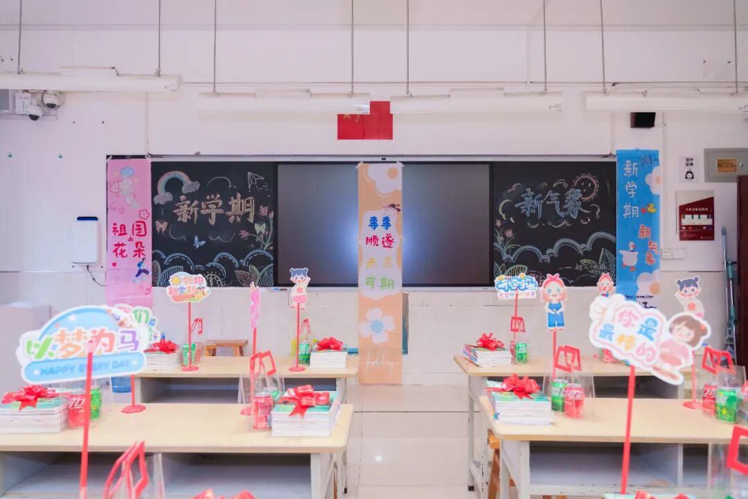 推开教室门,满眼都是惊喜:黑板上跃动着美好寄语,新课本列兵般整齐排队,书桌上、后黑板上还有承载祝福的小小惊喜。班主任和志愿者同学布置好教室,让这心意,化作同学们眼里的光,照亮新学期的起跑线。