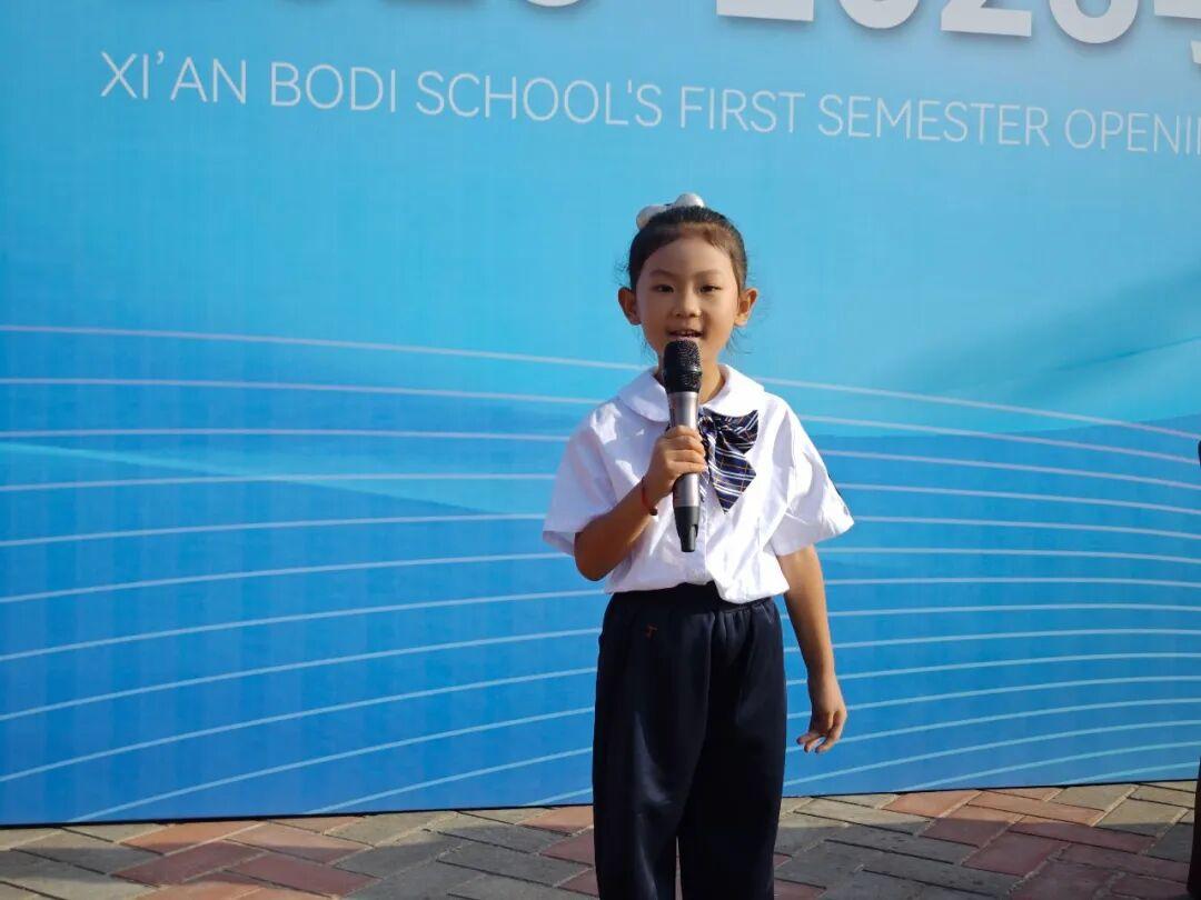 从小学一年级到高三,五名学生代表畅谈新学期梦想。他们誓言将勤奋学习、全面发展,传承博迪学子的优秀品质。
