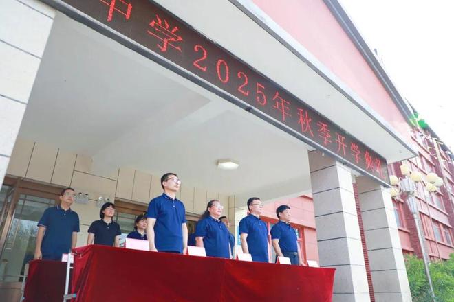伴随着激昂雄壮的国歌声响起,开学典礼正式拉开了帷幕。全体师生齐唱国歌,面向国旗肃然而立,怀着崇高的敬意注视着冉冉升起的国旗,心中燃起对新学期的奋斗激情和美好憧憬。