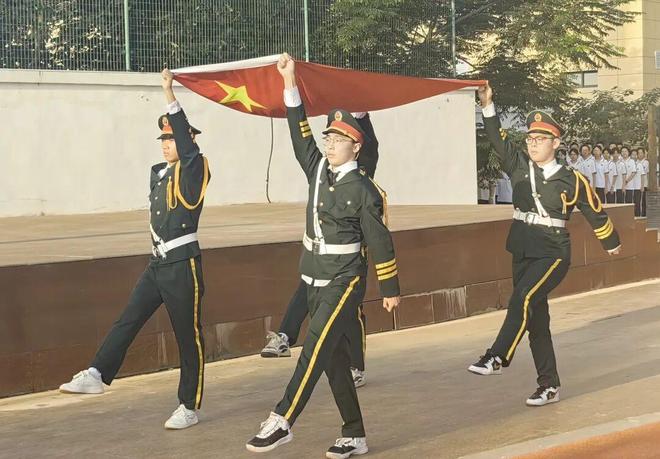 庄严的升国旗仪式中,开学典礼正式开篇。伴随着铿锵有力的出旗乐,旗手们迈着坚定的步伐走向旗杆,全体师生肃立注目。当鲜艳的五星红旗冉冉升起,嘹亮的国歌响彻操场,每一个挺拔的身影、每一双专注的眼眸,都满含对祖国的敬意,更藏着对高三一年的坚定信念 —— 以赤诚之心为底色,用奋斗书写青春答卷。