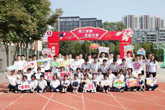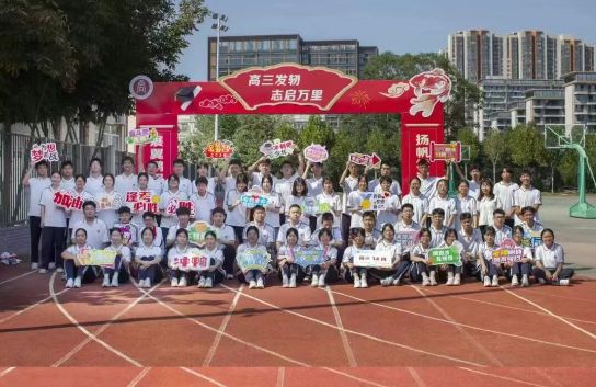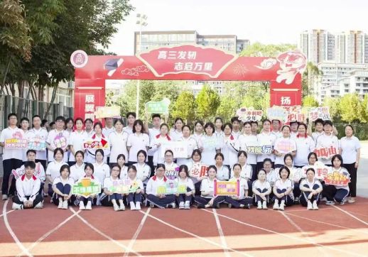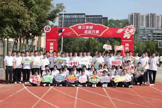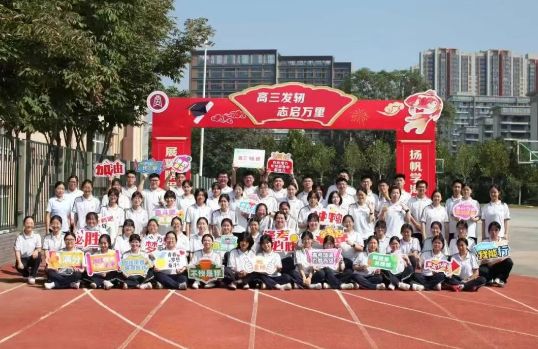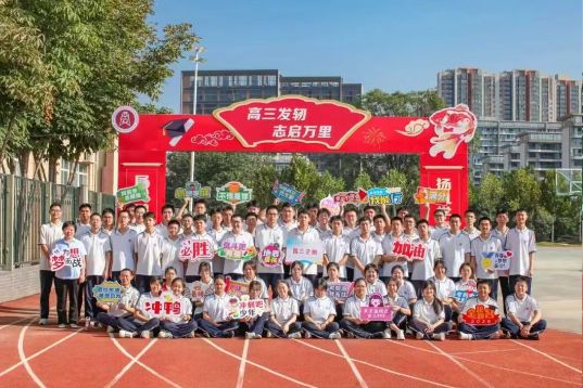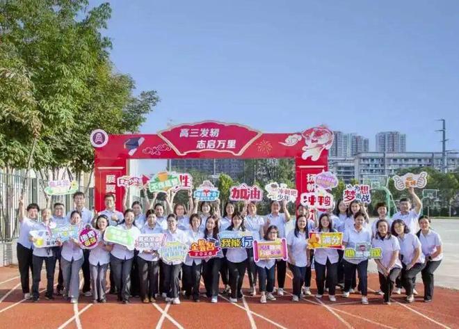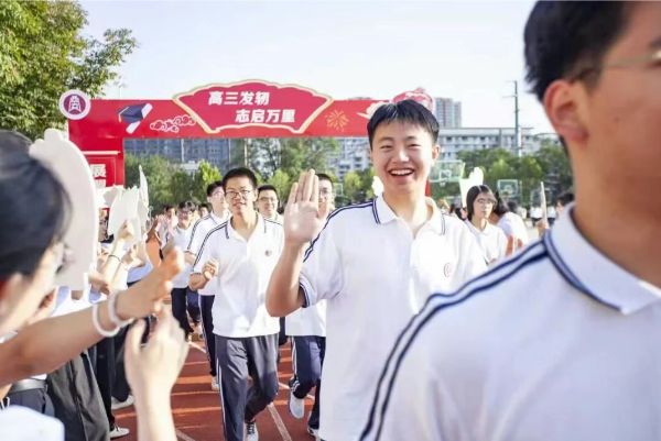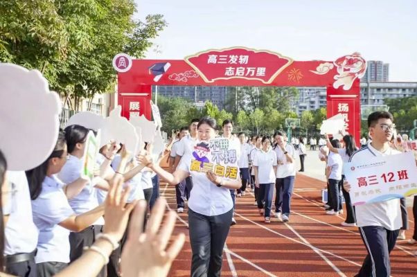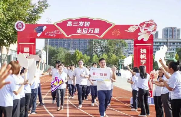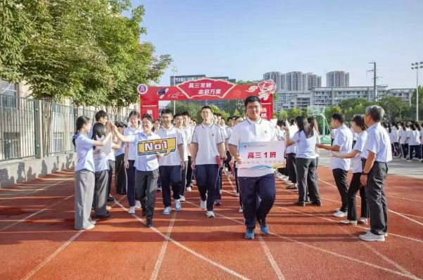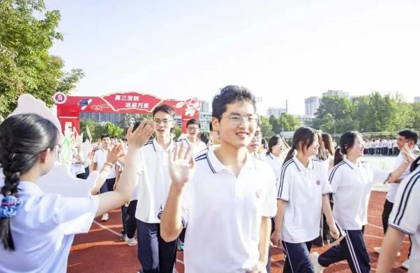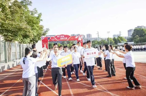 最令人心潮澎湃的环节来了!操场一侧“高三发轫·剑指巅峰”的高三之门早已隆重布置好。当各班学子在班主任的带领下,手持班牌走过“高三门”的一刻,两旁的老师们热情地与他们击掌、相拥。掌心传递的温暖,老师眼中的期许,化作每一位学子内心的温暖:高三不是孤军奋战,而是有一群人并肩同行。