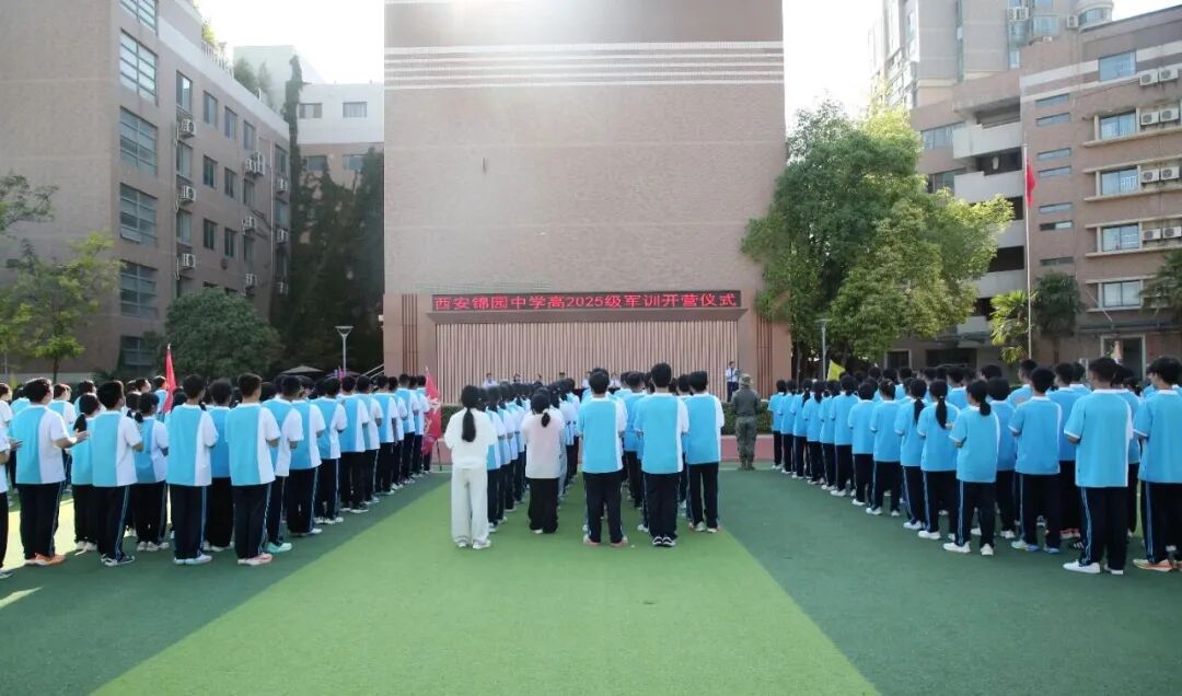 秋光为序,征程新启。9月1日下午,西安锦园中学操场军容肃整、气氛庄严,2025级高一新生军训开营仪式于16:40正式拉开帷幕。此次军训旨在通过国防实践教育锤炼学生意志、增强集体观念、传承红色基因,为新学年的学习生活注入奋发向上的精神动力。
