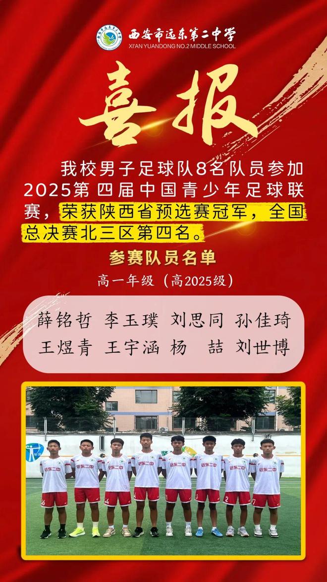 喜报︱西安市远东第二中学男足在2025第四届中国青少年足球联赛中取得佳绩