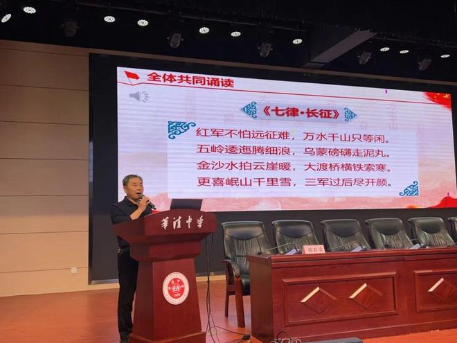 全体师生共同诵读毛泽东《七律·长征》,在激昂的诗词中厚植爱国情怀,汲取奋进力量。