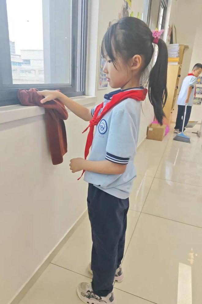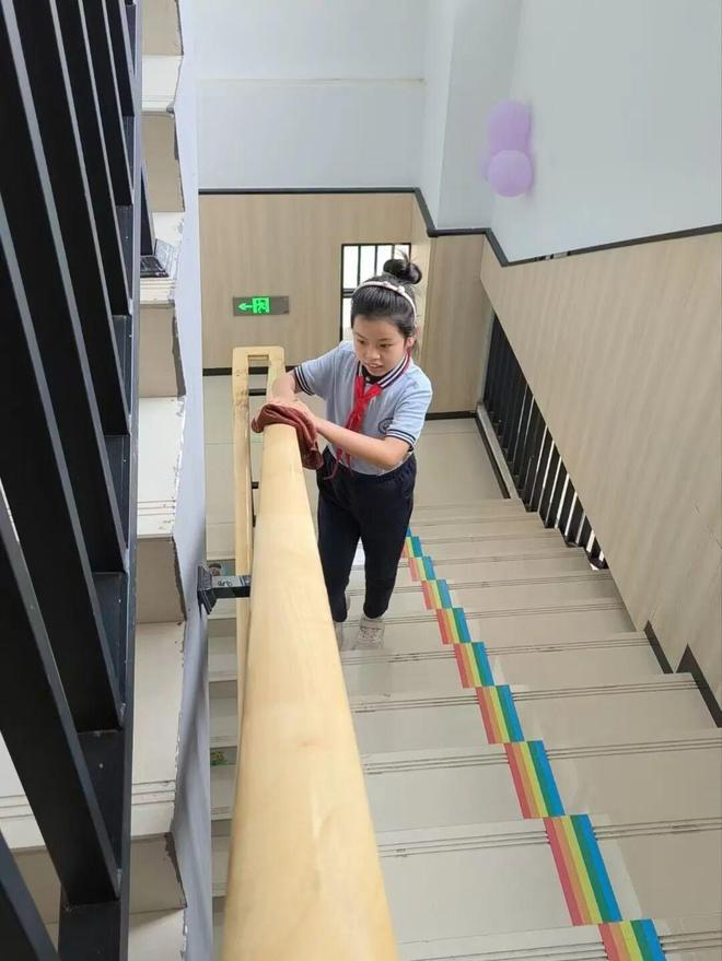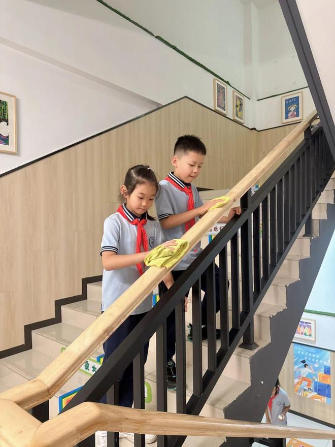 放学后,一场有趣的“整洁大冒险”在校园展开!孩子们一边排队,一边化身“整洁小卫士”:主动拾起操场上的落叶,轻轻放进垃圾桶;发现走廊上的垃圾,立刻弯腰捡起;就连楼梯扶手也被擦得一尘不染。