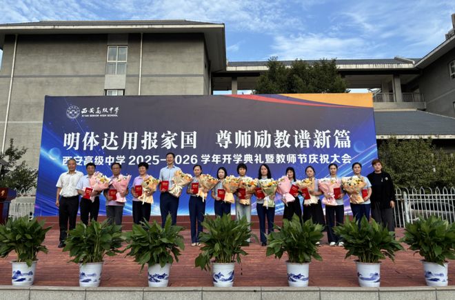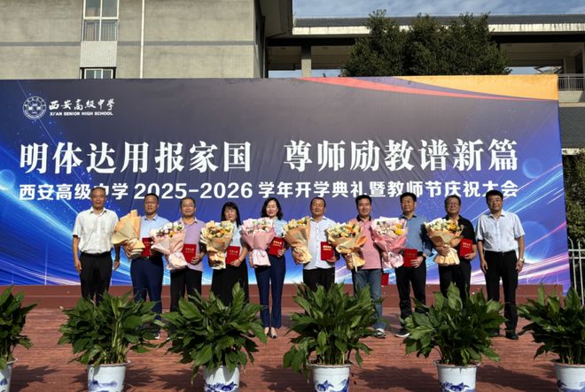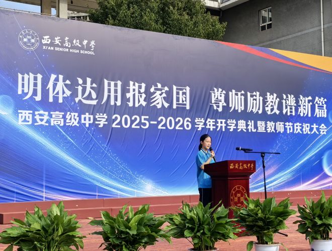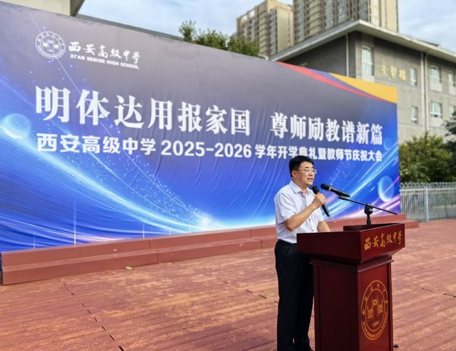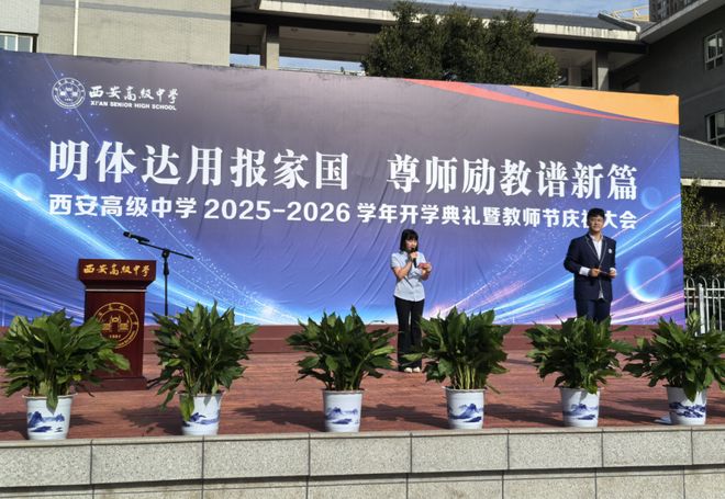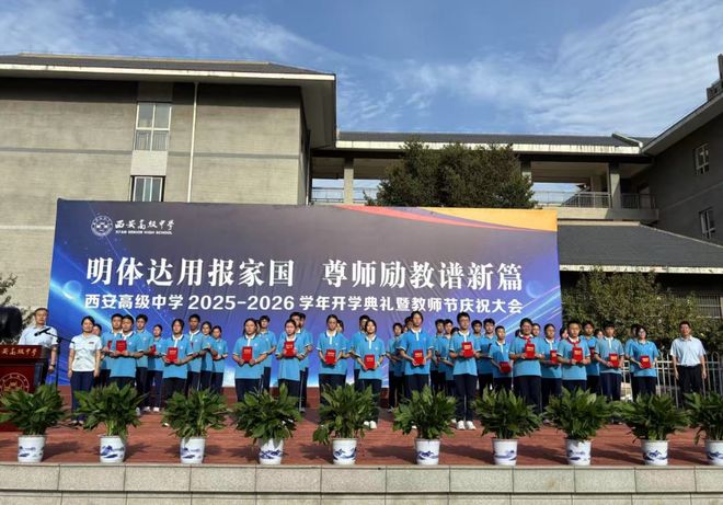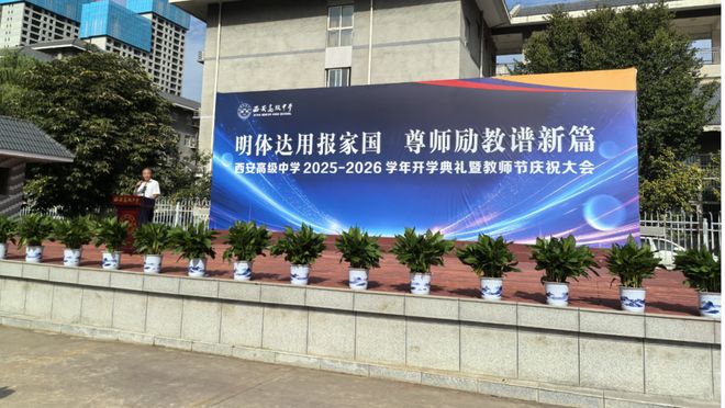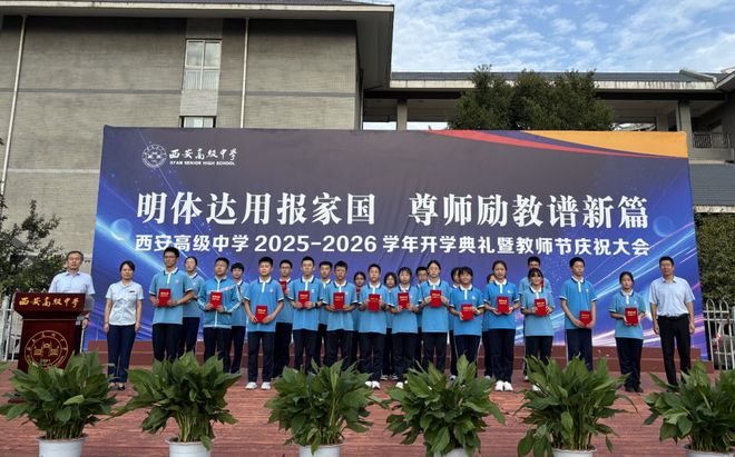 金秋送爽,丹桂飘香。2025年9月9日下午4时,西安高级中学在学校操场隆重举行了以“明体达用报家国尊师励教谱新篇”为主题的2025-2026学年开学典礼暨教师节庆祝大会。全校师生齐聚一堂,共同迎接新学年的开启,并向辛勤耕耘的教师们致以节日的崇高敬意。