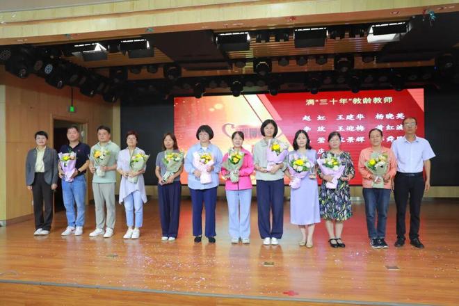 岁月无言,坚守有声。会上,学校还为教龄满三十周年的教师们送上定制纪念杯与鲜花,致敬他们数十年如一日的执着坚守和深情耕耘。