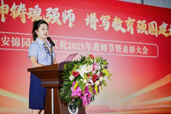教师代表王婷在发言中强调了学校“和”文化对教师团队的深刻影响。她表示,尽管学段不同,但全体锦园人始终秉持“为党育人 为国育才”的共同使命,托举起孩子们的未来。她呼吁教师们继续以仁爱之心滋养生命,以专业智慧践行“强国有我”的誓言,展现了一线教育者的执着与大爱,折射出锦园教师的精神传承与时代担当。