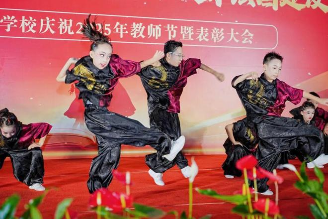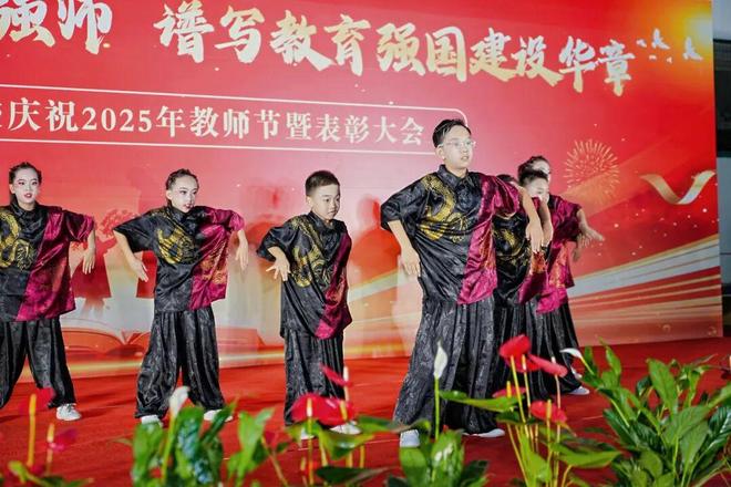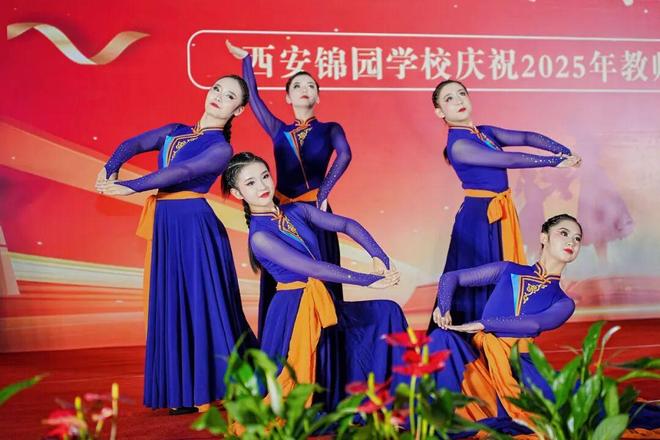 表彰环节后,师生同台献上精彩文艺演出。小学街舞《JY“和”力少年》洋溢蓬勃朝气,双排键《铁血丹心》悠扬动听;教师舞蹈《我愿一时归常在》演绎款款深情,男中音《父亲的草原母亲的河》尽显厚重动人;中学生舞蹈《塔林呼恒》尽展民族风采,压轴歌曲《我们的新时代》激昂高亢,唱出教育者的奋进心声。整场演出节目丰富、情感真挚,全面展现锦园师生卓越的艺术素养和昂扬向上的精神风貌。