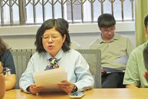 青年教师代表黄嘉霓发言,表达了自己拜师求学的决心,她表示一定会珍惜机会、虚心求学,不负期望。