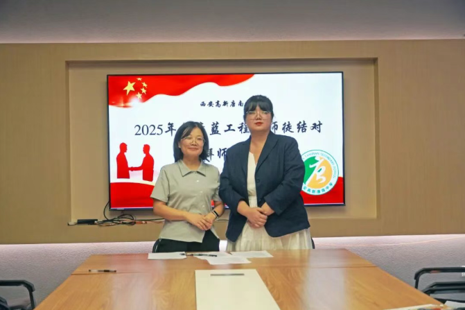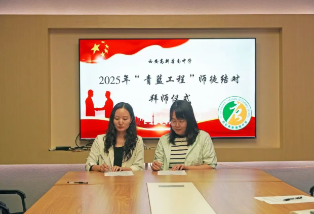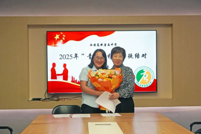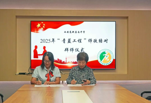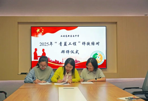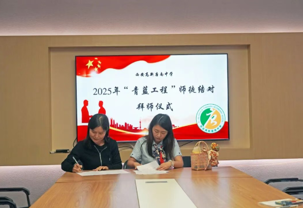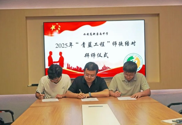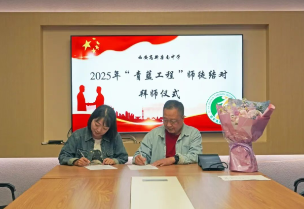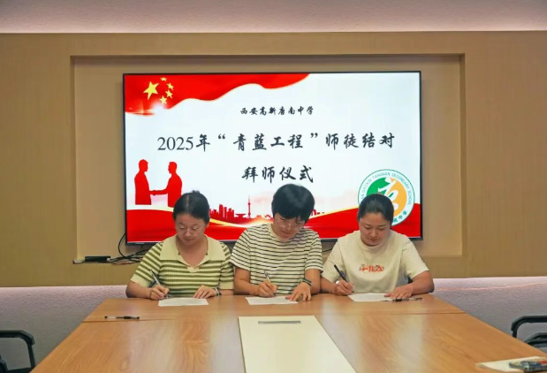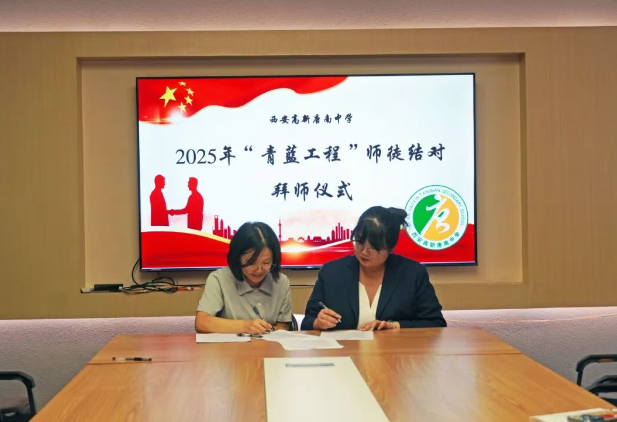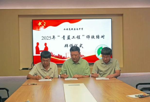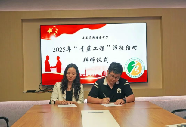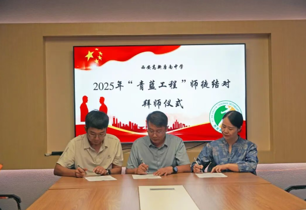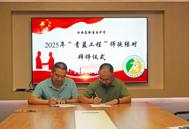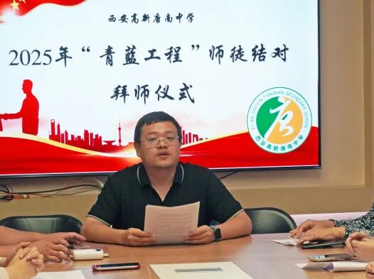 为加强教师队伍建设,促进青年教师专业成长,夯实学校可持续发展的人才基础,2025年9月11日中午,西安高新唐南中学举行2025年“青蓝工程”师徒结对拜师仪式。