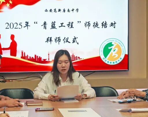 拜师仪式在学校会议室举行,由西安高新唐南中学教研副主任何栋良主持。