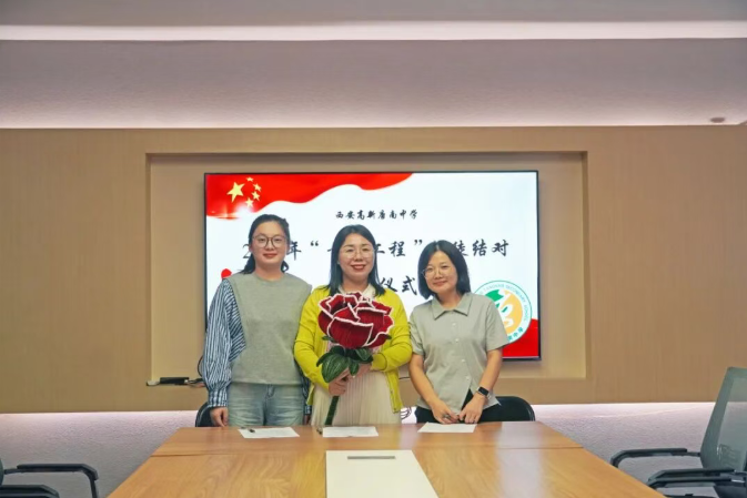 教务处副主任韩琳、政教处副主任惠红娟分别宣读了《西安高新唐南中学“青蓝工程”学科指导结对协议书》、《西安高新唐南中学老带新班主任工作指导协议书》。