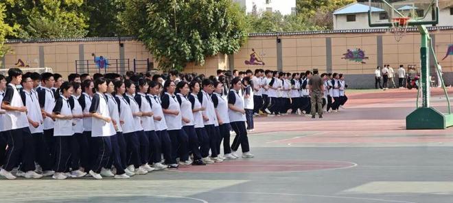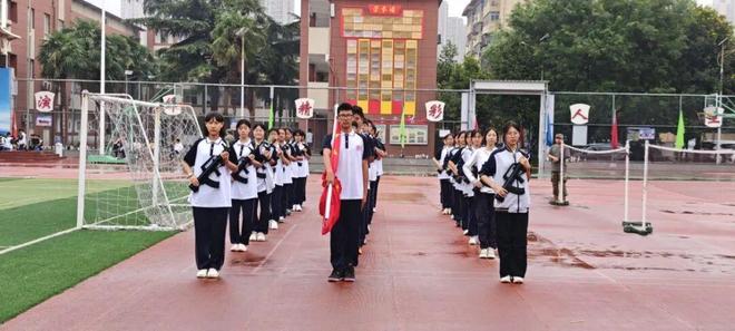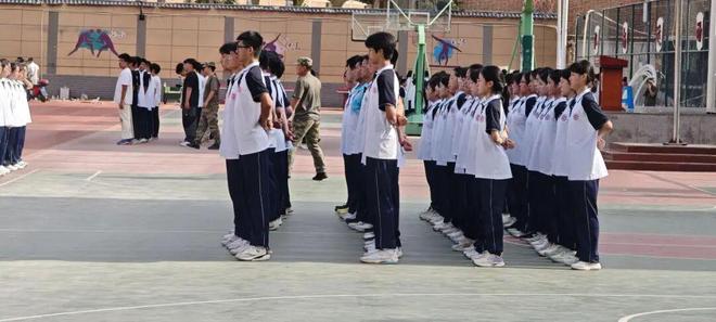 9月9日,训练进入精细化阶段。同学们被划分为不同方阵,分别进行“正步走”“齐步走”“跑步走”等专项训练。步伐从凌乱到协调,摆臂从松懈到有力,口号从微弱到嘹亮。特别引人注目的是护旗方阵的同学们,他们肩负着护卫国旗的神圣使命,每一次踢腿、每一次扬旗都反复锤炼,力求完美。这一天,校领导的亲切慰问也如春风化雨,为刻苦训练的学子们注入了强大的精神动力。