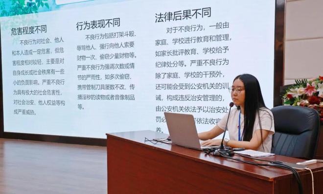 大会首项议程中,未央区司法局普法宣讲团以“预防青少年违法犯罪”为主题开展专题讲座。宣讲团成员结合青少年身心发展特点,选取贴近校园生活的真实案例,从“校园欺凌的法律后果”“网络交友与信息安全”“冲动行为的代价”三个维度层层剖析,既清晰告知学生行为的法律边界,指导大家运用法律武器维护自身权益,又深刻强调敬畏法律、遵守法律的重要性。现场师生认真聆听,积极参与互动,在严肃且活跃的氛围中深化了法治认知。