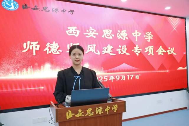 为筑牢教师师德防线,明确新学期育人方向,2025年9月17日下午,西安思源中学召开师德师风建设专项会议,出席本次会议的有校长王琪、德育副校长王强、校长助理高建伟及全体教职工。本次会议由校办主任郭雪颖主持。