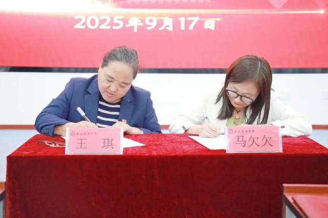 校长王琪与高一年级中心主任马欠欠签订承诺书