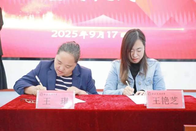 校长王琪与高二年级中心副主任王艳芝签订承诺书