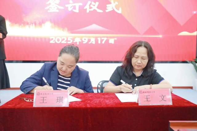 校长王琪与高二年级中心主任薛飞签订承诺书