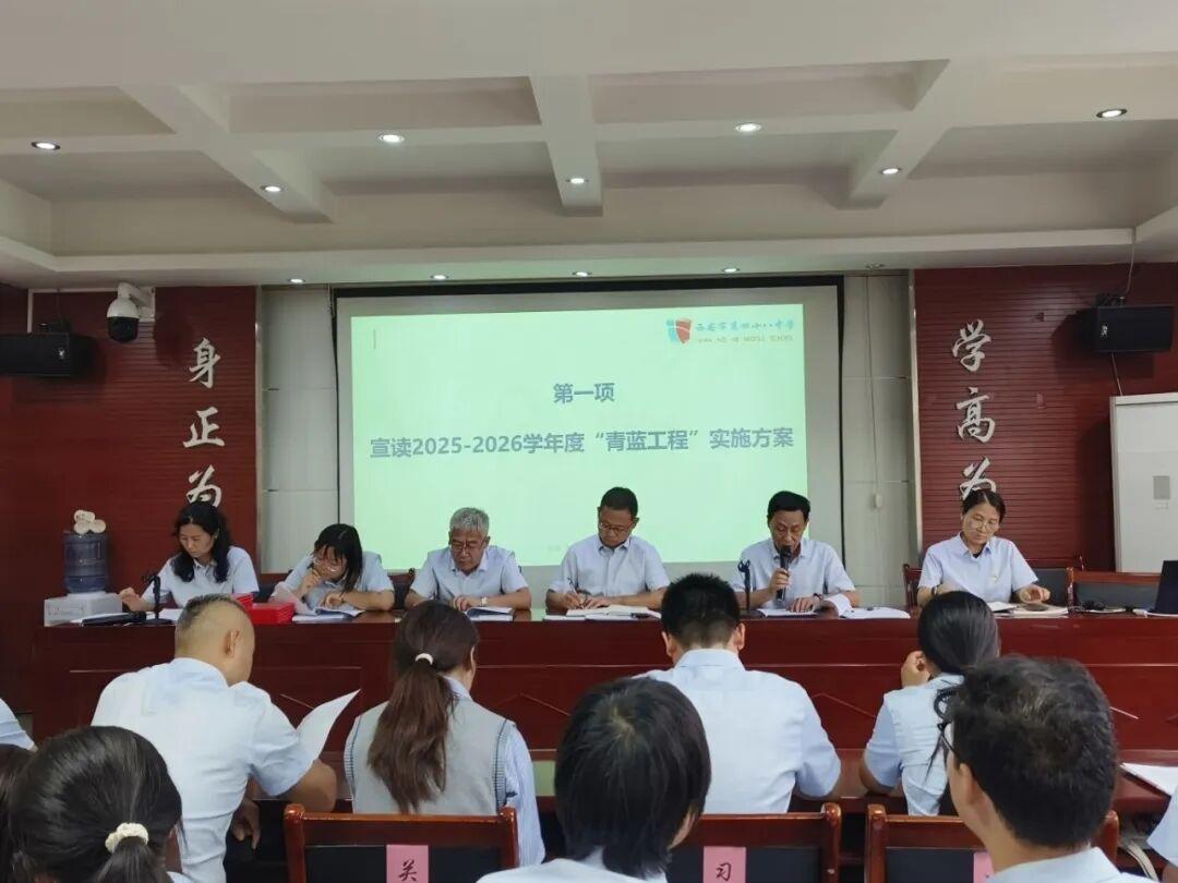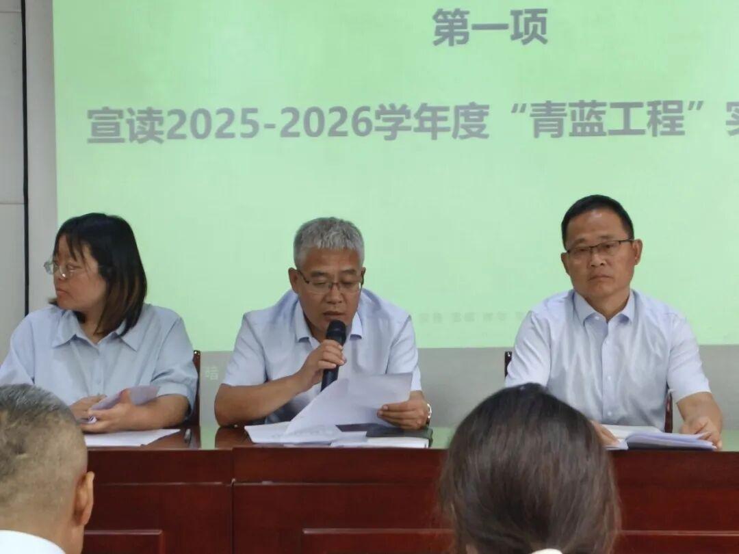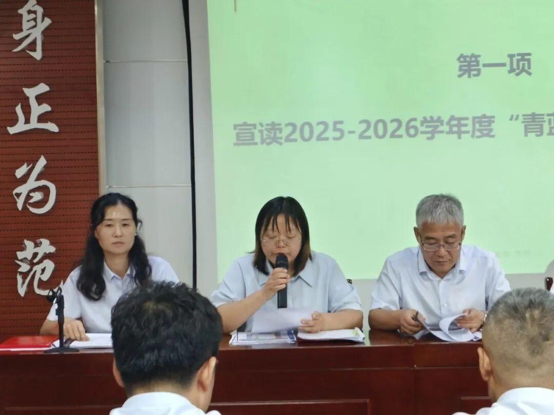 仪式于下午第八节课举行。教研副主任周爱莉首先进行了开场致辞。接着教研主任魏军明概述了“青蓝工程”的目标意义,并宣读了《2025-2026学年度第一学期“青蓝工程”实施方案》,明确了师徒职责与考核标准。