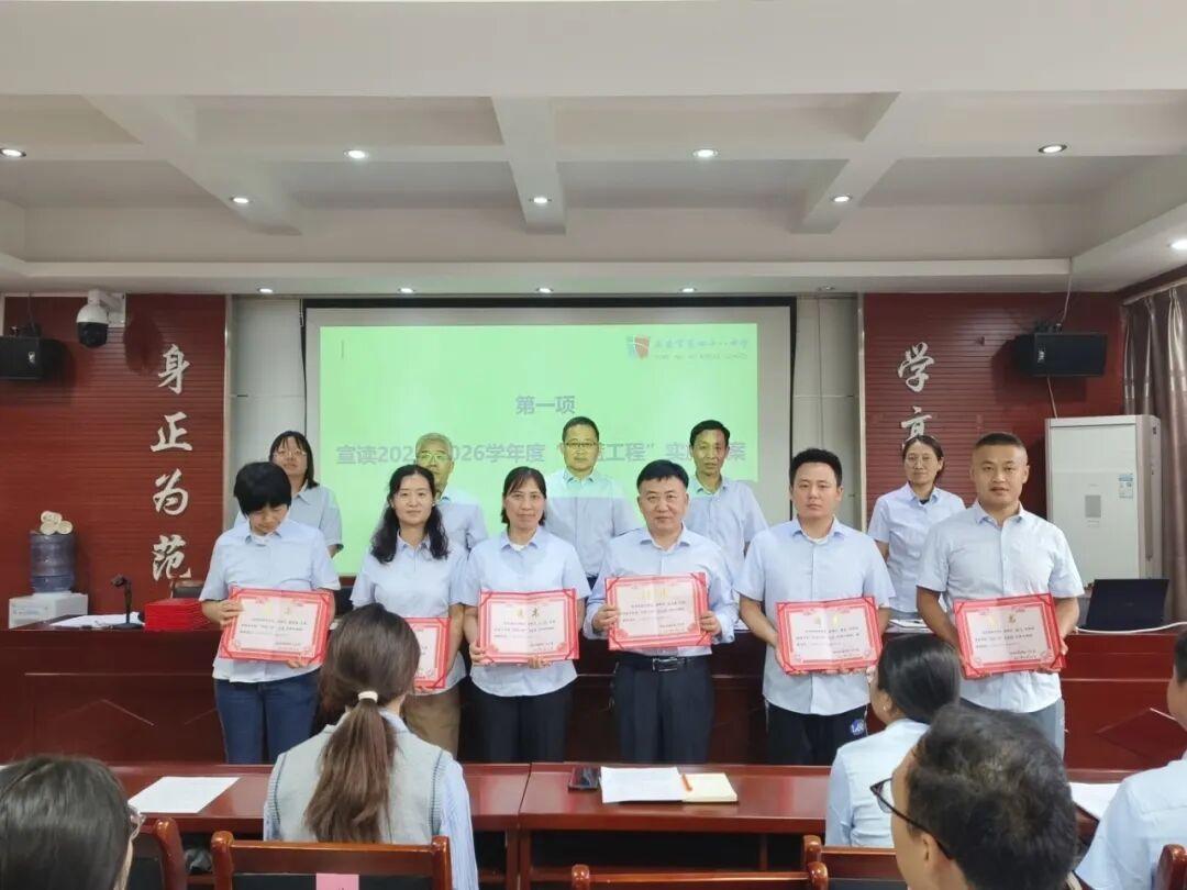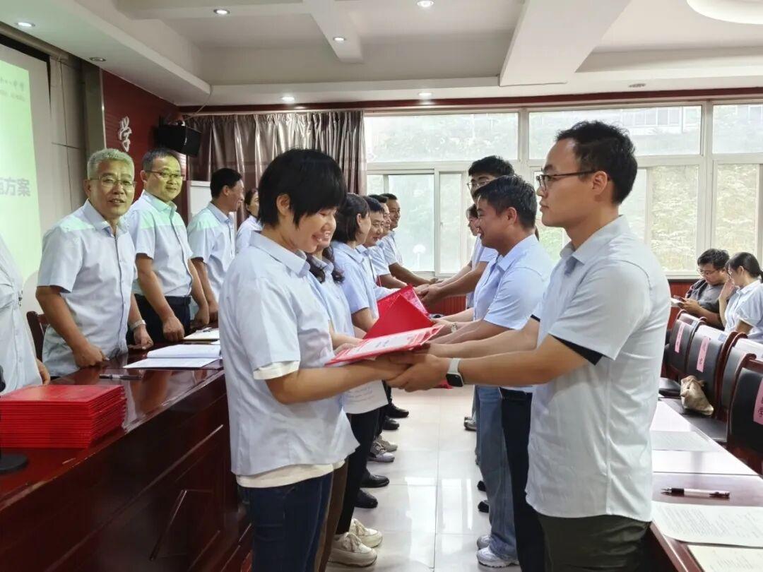 在聘书授予环节,学校为16名骨干教师颁发了指导教师聘书,其中包括班主任指导教师10位、学科指导教师6位。