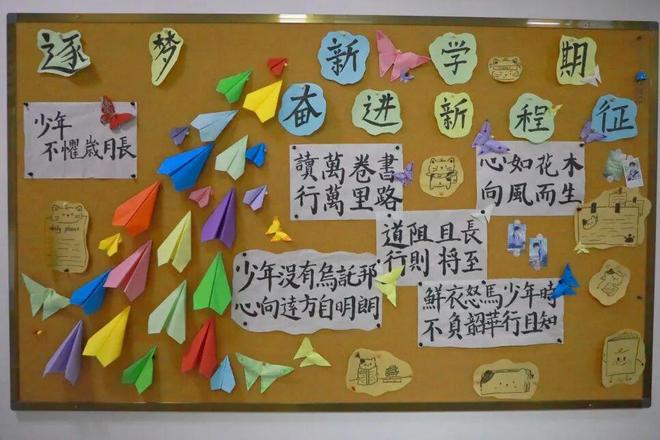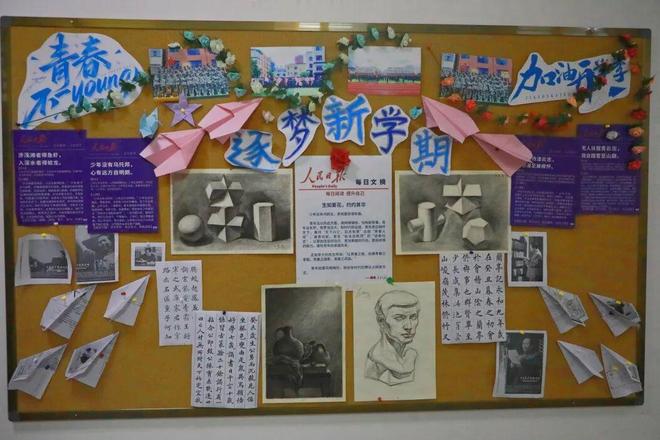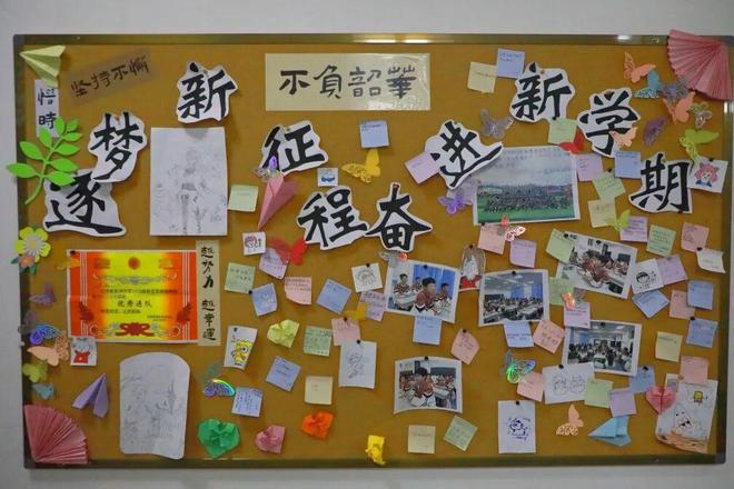 作为刚开启高中旅程的 “新生力量”,高一的班级文化墙满是蓬勃朝气。围绕 “逐梦新学期,奋进新征程” 的主题,墙面处处传递着对未来的期待与冲劲,既藏着新们对高中生活的好奇,也写满了他们想要突破自我、全力向前的决心,让人一眼就能感受到这份专属高一的鲜活与热血。
