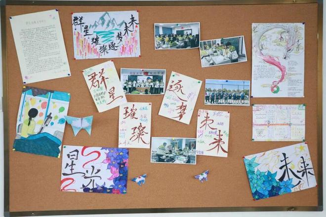 升入高二,同学们多了几分成长的沉稳,文化墙也更添一份凝聚力。以 “星光璀璨,筑梦前行” 为核心,墙面不仅展现着每个同学的独特光芒,更凝聚着班级共同的目标 —— 同学们彼此陪伴、互相支持,把个人的小梦想融入集体的大方向,每一处设计都透着团结与温暖,让人感受到青春同行的力量。