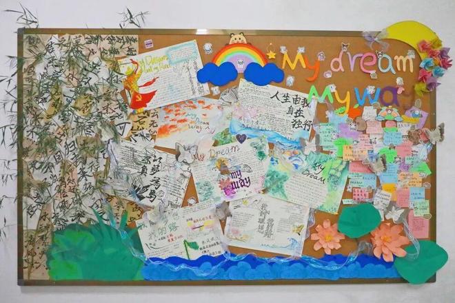 即将踏上冲刺之路的高三,文化墙满是坚定与热血。“My Dream, My Way” 的主题,既彰显着学长学姐对梦想的执着,也传递着 “走出自己专属道路” 的信念。墙面处处藏着对未来的憧憬、对拼搏的坚持,更有同学间的鼓励与陪伴,每一眼都能感受到他们向着目标全力冲刺的决心,让人忍不住为他们加油喝彩!
