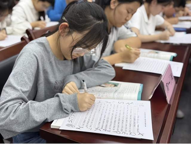 同学们坐姿端正,神情专注,将对书写的严谨与对青春的热忱,倾注于每一个字母、每一个单词。有人凝神慢行,力求笔笔规范;有人把握节奏,谋篇布局;有人精雕细琢,守护卷面的纯净。