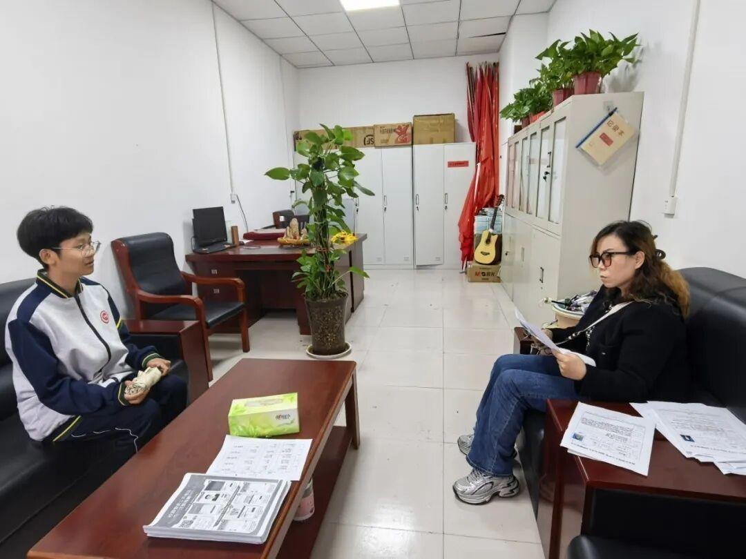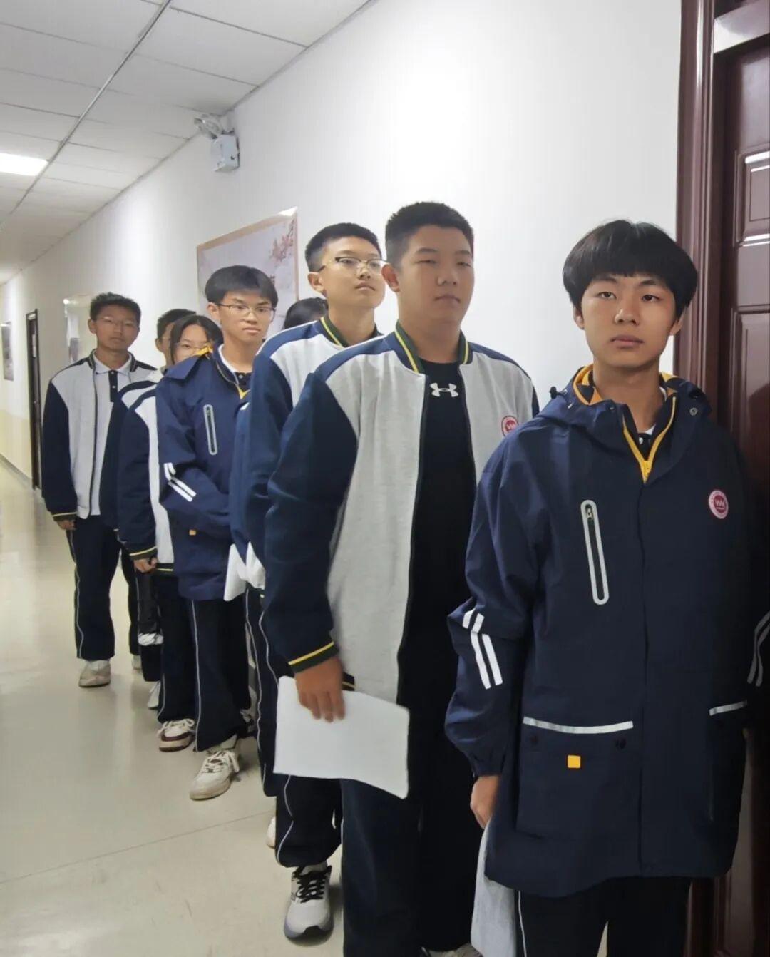 下午16时35分,参选学生在政教处门口有序集合,随后按部门分配前往各面试点。主席团、体育部、文艺部、卫生部、纪律部、校园文化宣讲团及融媒体中心7个部门同步开展面试工作。