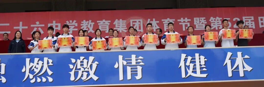 随后,大会对运动会团体总分优胜班级和精神文明奖获得班级颁发了集体奖项。