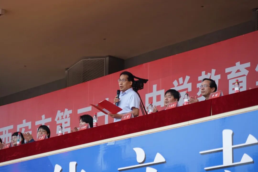 在雄壮的乐曲声中,国旗护卫队、标语方阵、红旗方阵依次入场,步伐整齐、气势如虹。二十六中教育集团校长王同洲致开幕辞,王校长充分肯定了教育集团在教育教学与艺体领域取得的丰硕成果,并鼓励全体师生凝心聚力、共谋发展,齐心谱写教育新篇!