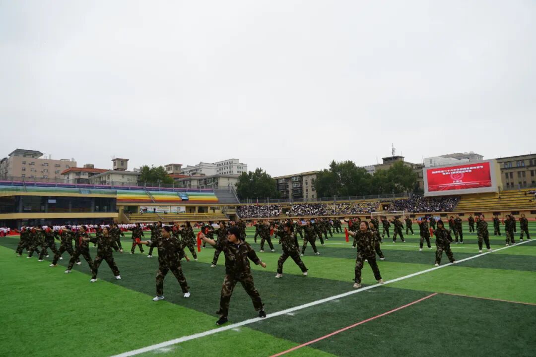 开幕式表演中,由中铁中学高一年级女生组成的“匕首操”方阵队列整齐、动作刚劲、干净利落,展现出平日训练的扎实成果与顽强拼搏的青春斗志。