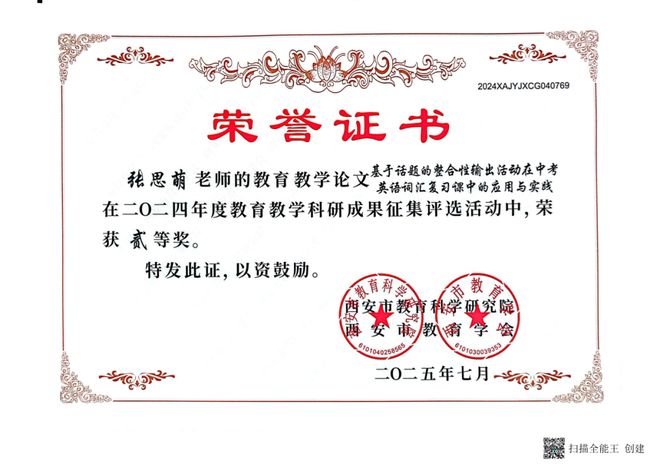 “乘风破浪会有时,直挂云帆济沧海”。近期,西安市航天中学师生在教育科研、学科竞赛与教师发展领域锐意进取,屡获佳绩,尽显航中人的卓越风采与奋进姿态!